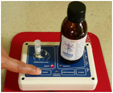 - El dispositivo Remedy Maker: Es utilizado para copiar/duplicar las frecuencias electromagnéticas de los viales del máster kit a recipientes que se utilizarán en las personas que están siendo tratadas. Estas botellas o recipientes tienen una solución de agua y alcohol que será suministrada en la boca con un pequeño rociador.