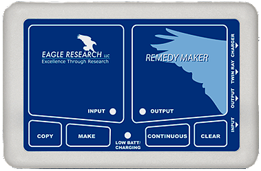 - El dispositivo Remedy Maker: Es utilizado para copiar/duplicar las frecuencias electromagnéticas de los viales del máster kit a recipientes que se utilizarán en las personas que están siendo tratadas. Estas botellas o recipientes tienen una solución de agua y alcohol que será suministrada en la boca con un pequeño rociador.